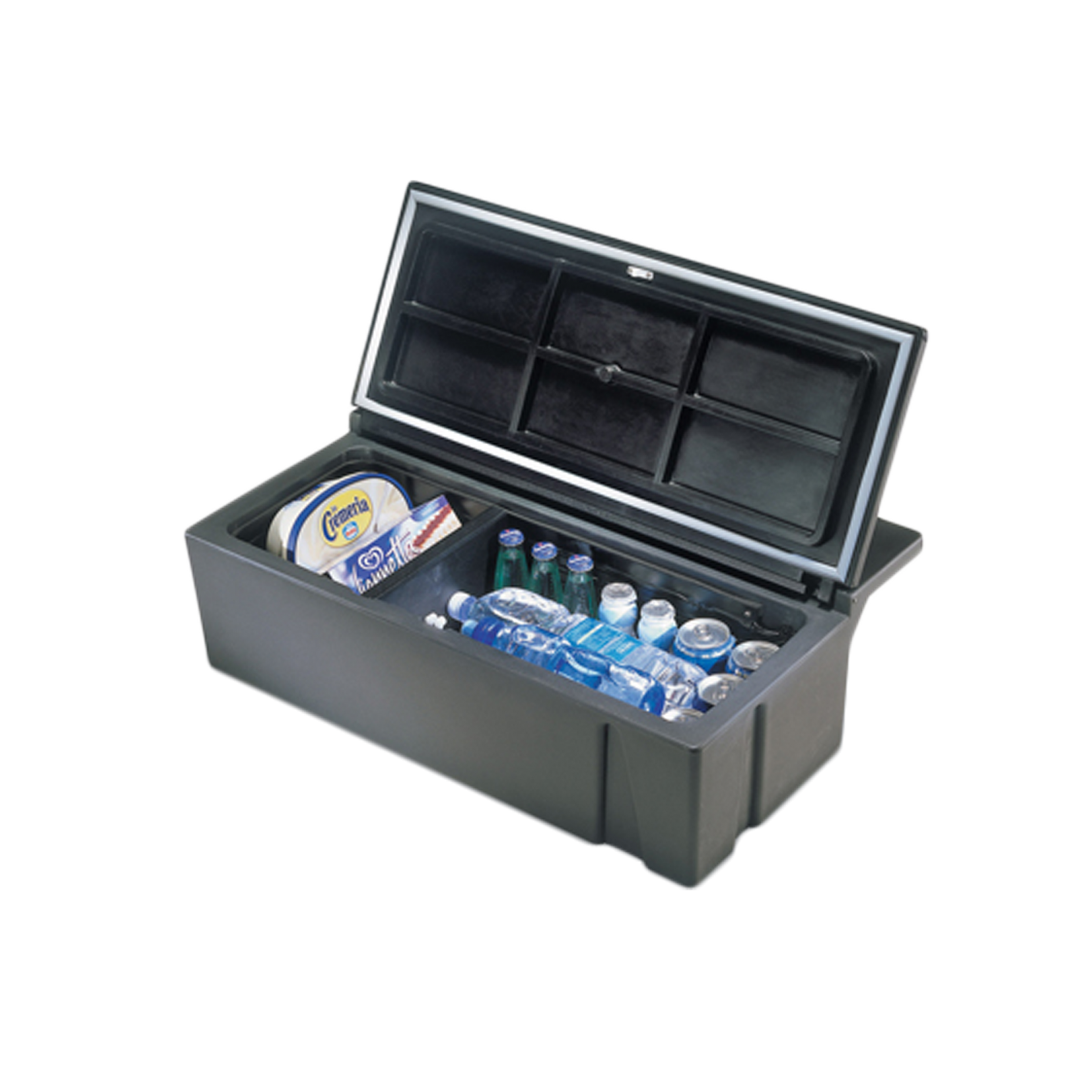 Deze koelkast is met zijn compacte ontwerp speciaal ontworpen voor krappe en beperkte ruimtes en is de optimale keuze voor iedereen die geen concessies wil doen aan het koel houden van dranken, ondanks ruimtebeperkingen.Dit model is speciaal ontworpen voor bepaalde typen industriële voertuigen en is ook geschikt voor algemene installatie. De binnenruimte is verdeeld in één compartiment met een vaste of verplaatsbare scheidingswand en is direct klaar voor gebruik, ongeacht de temperatuur in de koelkast of koel-vriescombinatie.